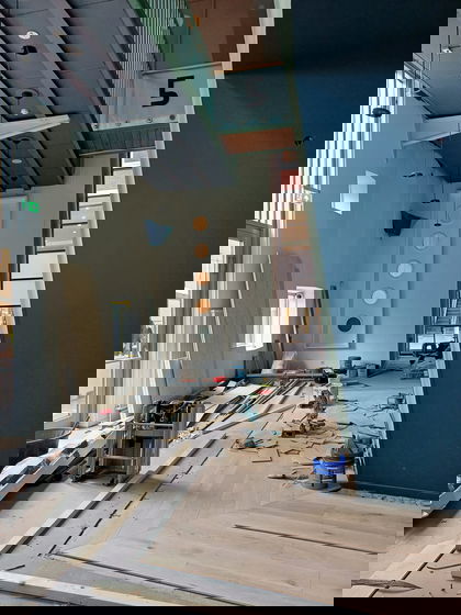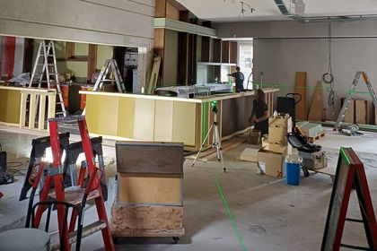 Het interieur van de bar is al ver gevorderd; woensdag en donderdag kan de apparatuur geplaatst worden. De open keuken met pizza-oven worden dan ook gebouwd. Een deel van de parketvloer is al gelegd, zodat de voorbereidingen voor de gietvloer gedaan kunnen worden.