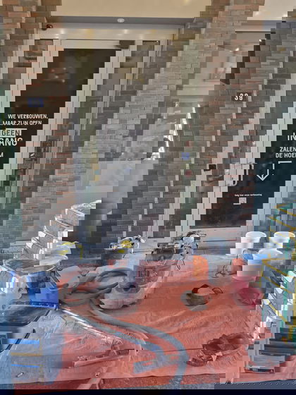 De laatste week van de verbouwing is aangebroken. Het interieur van de bar is zo goed als af en inmiddels is ook de apparatuur geplaatst. De open keuken én pizza-oven worden opgebouwd. Op dit moment wordt de gietvloer gegoten.