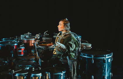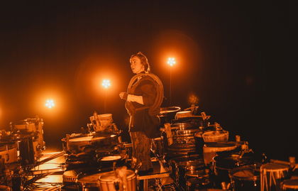 SUPERDRUM is mechanisch en menselijk muziektheater over een veranderende werkelijkheid. Van de eerste trilling tot de laatste mens. Een wereld waarin scheppingsmythen, vergeten verhalen en technologische evoluties door elkaar dansen op de beat van een gigantische installatie van honderd trommels.
