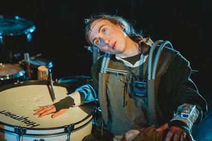 Op het podium staat de Superdrum: een monsterlijke constructie van honderd trommels. Een zelfspelend, eigenwijs en dreunend klankwezen van geluid en licht. Hier voert de machine de beat aan, terwijl de laatste mens (Jacobien Elffers) zich staande houdt in een wereld die kantelt. Wat is nog mens en wat is machine? Hoe klinkt ons verhaal als er niemand meer is om het te vertellen? Is dit het einde of juist het begin?