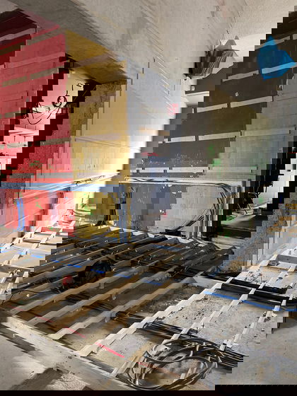 De laatste week van de verbouwing is aangebroken. Het interieur van de bar is zo goed als af en inmiddels is ook de apparatuur geplaatst. De open keuken én pizza-oven worden opgebouwd. Op dit moment wordt de gietvloer gegoten.