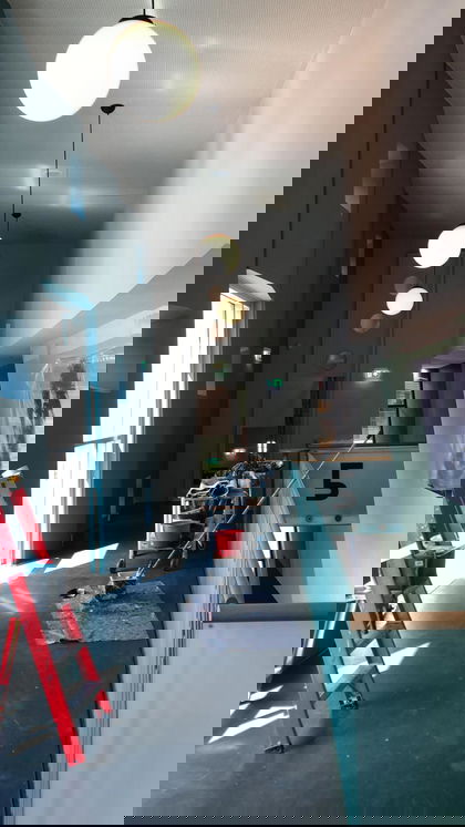 De muren op de 1e etage zijn al helemaal geverfd, nu zijn onze collega’s op de begane vloer begonnen.