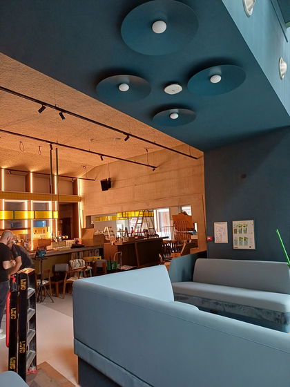Het interieur van de bar is al ver gevorderd; woensdag en donderdag kan de apparatuur geplaatst worden. De open keuken met pizza-oven worden dan ook gebouwd. Een deel van de parketvloer is al gelegd, zodat de voorbereidingen voor de gietvloer gedaan kunnen worden.